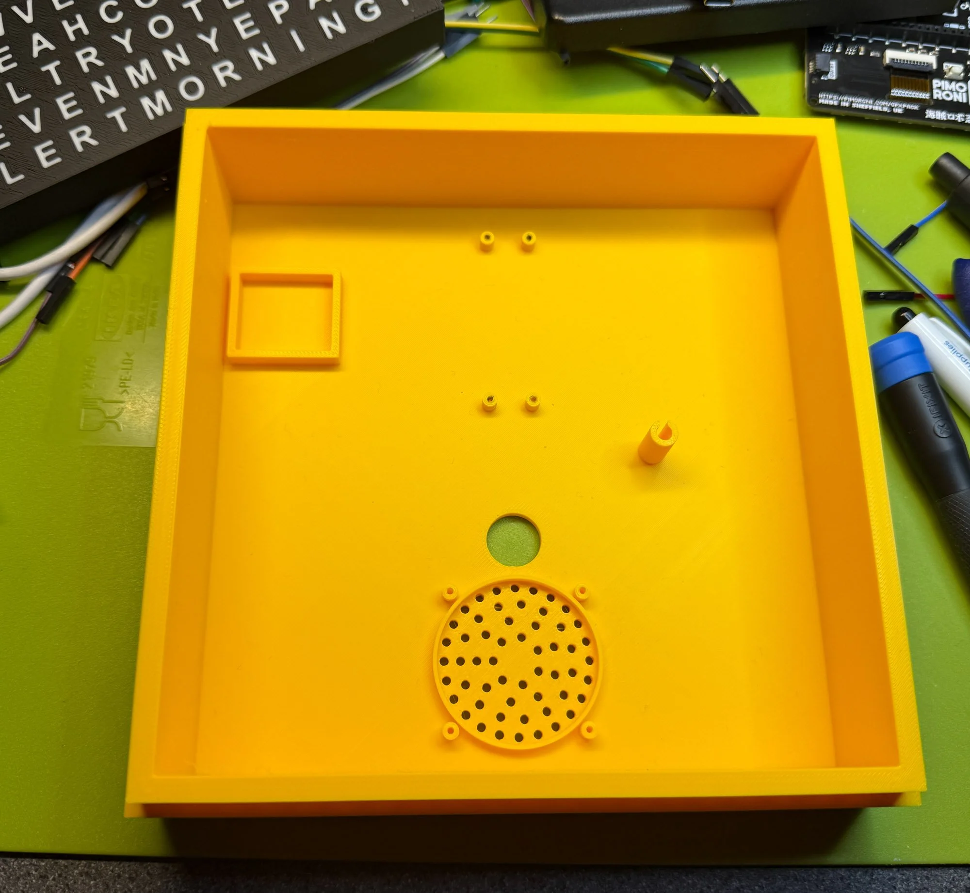 So that’s why I reduced the height of the pillars and printed the box again. It makes a surprising difference to the sound. As to why I got this wrong in the first place: I made all the pillars in the box the same height, then I increased the height of the pillars that support the PICO In the middle of the board and that made the speaker pillars higher too.