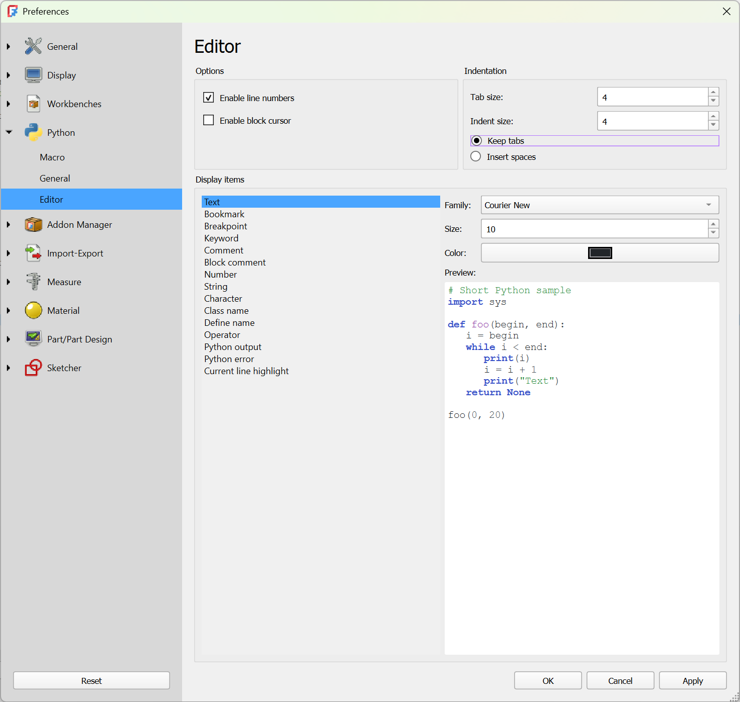 FreeCAD Python Indent Settings