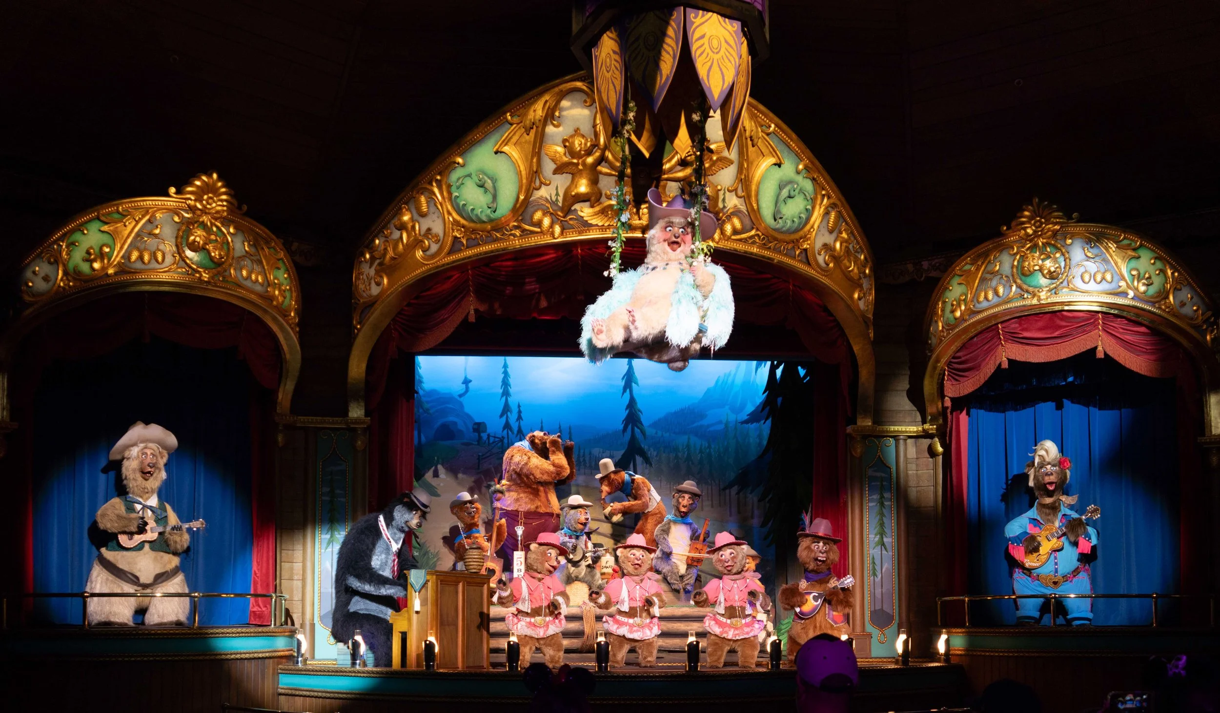 One of the highlights of a trip to the Magic Kingdom (after Mickey’s Runaway Train which is really good) is a trip to the Country Bear Musical Jamboree. Mechanical bears in various costumes sing country music extremely well. It has the benefit of being fairly quiet and out of the rain.